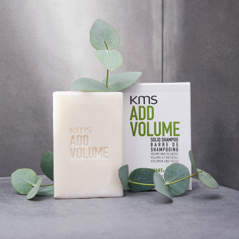 KMS - AddVolume - Solid Shampoo Bar - 75 gr reinigt feines bis normales Haar und verleiht ihm Volumen. Der Balken besteht zu 78% aus natürlichen Inhaltsstoffen. Der Bar ist frei von Alkohol, Sulfaten und Silikonen und wird nicht an Tieren getestet. Der Bar hat einen herrlich frischen Eukalyptusduft.