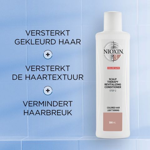 - Nioxin System 3 Scalp Therapy Revitalising Konditionierer 300 ml: hilft, das Haar widerstandsfähiger zu machen und den Feuchtigkeitshaushalt zu kontrollieren.